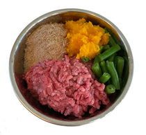 Mix it in with raw or cooked meat, following our recipes. Vegetables can also be an optional addition to the dog food.